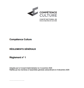 Le 9 décembre 2025, Compétence Culture tenait une Assemblée générale extraordinaire (AGE) afin de présenter aux membres un projet de modifications aux règlements généraux et aux lettres patentes de l’organisme. Ces propositions visaient à actualiser notre gouvernance pour mieux refléter les besoins du milieu culturel et les nouvelles réalités liées notamment à l’arrivée du Programme Intervention-Compétences.
